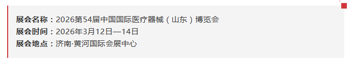 2026第54屆中國國際醫(yī)療器械(山東)博覽會將于2026年3月12日至14日在濟南黃河國際會展中心舉辦,由山東丞華會展有限公司主辦。作為中國區(qū)域性醫(yī)療器械行業(yè)的重要展會,山東醫(yī)博會匯聚醫(yī)療器械全產業(yè)鏈資源,集展示交易、技術交流與合作洽談于一體。